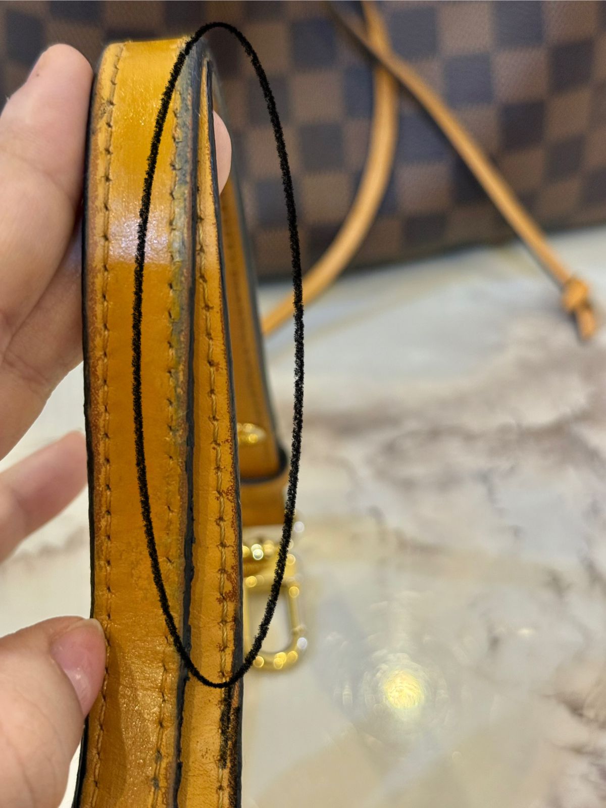 العيوب / لا يوجد ابدا عيوب في الشنطه شبه جديده – لكن وحده من الحدايد اللي في الستراب الطويل منفكه وموضح في الصور.